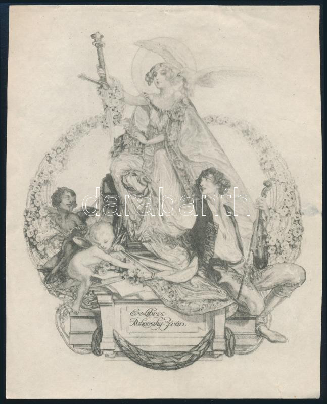 Franz von Bayros (1866-1924): Ex libris Rakovszky Iván. Heliogravür, papír, jelzett a nyomaton. Körbevágva. 13x10,5 cm