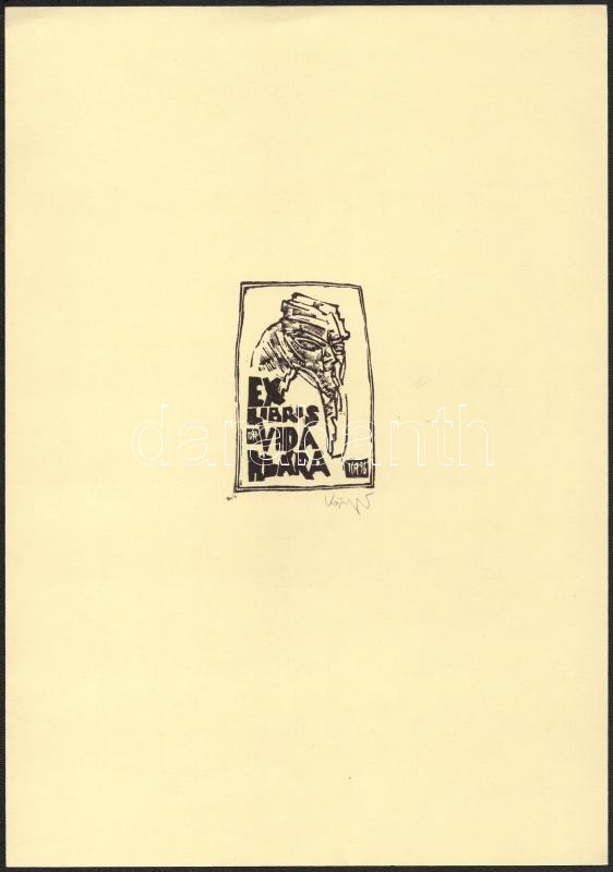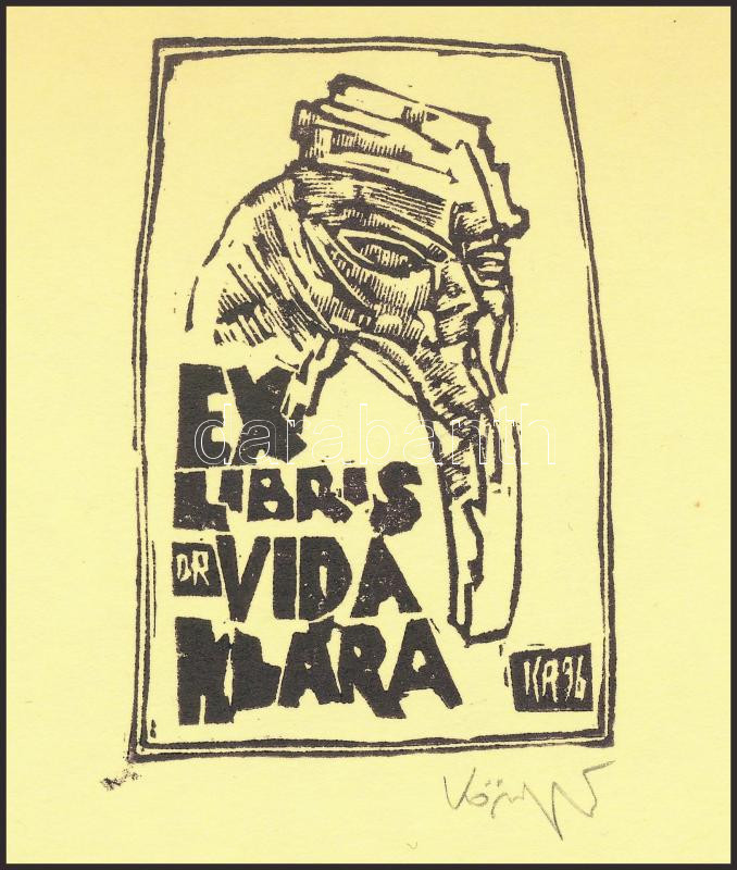 König (Kőnig) Róbert (1951-2014): Ex libris dr. Vidra Klára. Linómetszet, papír, jelzett, 7,5x5 cm