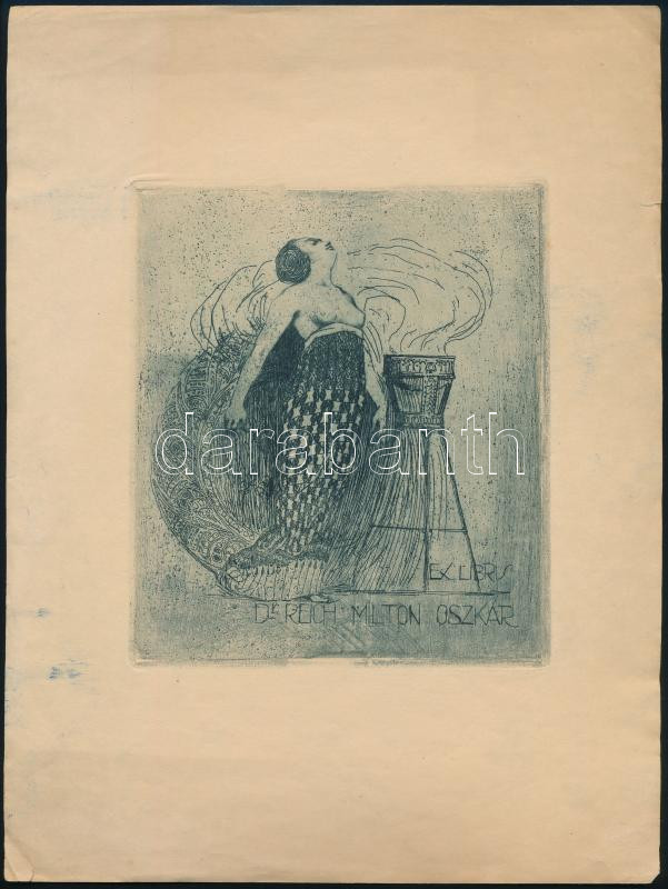 Markó Lajos (1882-): Erotikus ex libris Dr. Reich Milton Oszkár. Rézkarc, papír, jelzés nélkül, lapszéli apró szakadásokkal, 15×13 cm