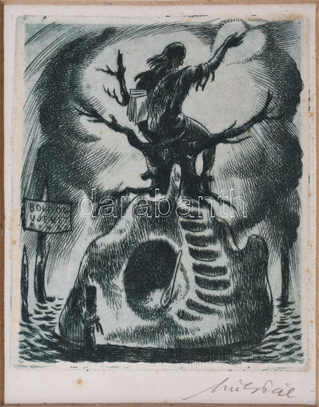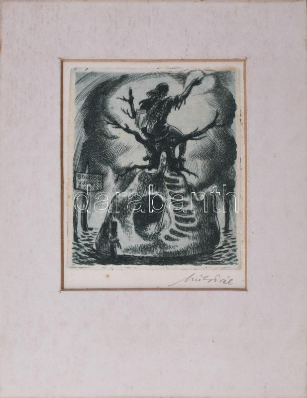 Mizser Pál (1941-2021): Boldog Újévet kíván, rézkarc, papír, jelzett. Apró foltokkal. Paszpartuban. 12x10 cm