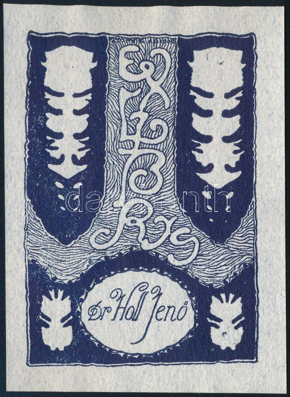Tichy Kálmán (1888-1968): Ex libris Dr. Holl Jenő (1909). Klisényomat, papír, jelzés nélkül, 8,5x6 cm