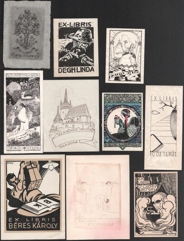 ca 1930 9 db art deco magyar ex libris, különböző alkotók és technikák, ritka darabok