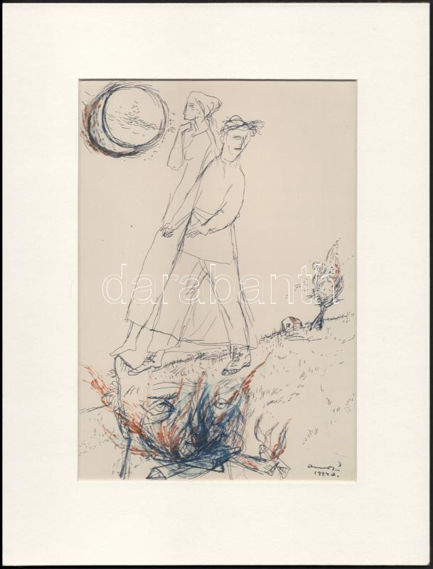Ámos Imre (1907-1944): Jelenet. Ofszet nyomat, papír. Jelzett a nyomat... https://www.darabanth.com/de/518-Gemalde-Plakat-ex-libris-Auktion/523.0/Gemalde-und-Grafiken/Gemalde-und-Grafiken~4/Amos-Imre-1907-1944-Jelenet-Ofszet-nyomat-papir-Jelzett-a-nyomaton-22-5x15-cm-paszpartuban~II3511898