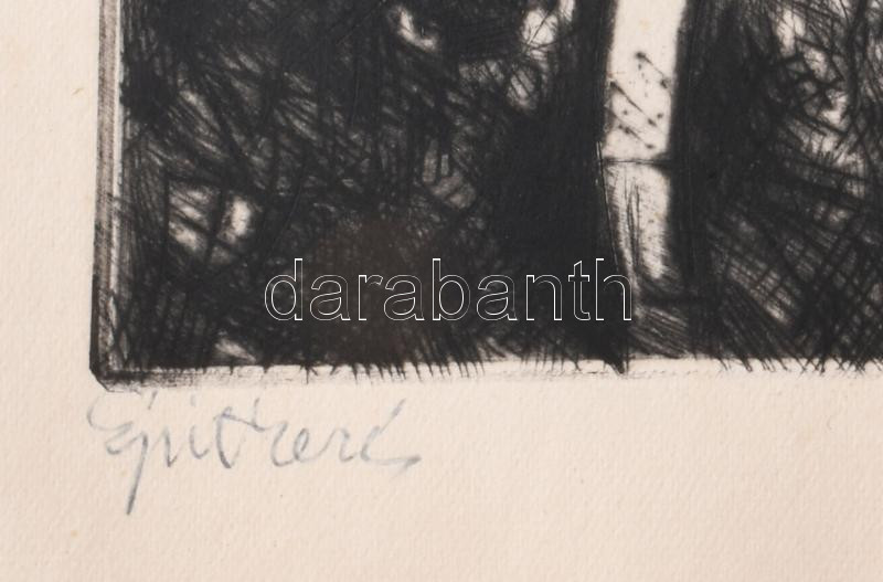 Beschreibung: Bordás Ferenc (1911-1982): Építkezés (Budapest, Dunapart). Rézkarc, papír, jelzett. Lap széle kissé foltos. 28,5x39 cm