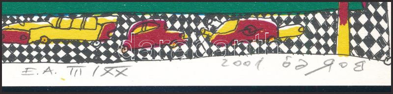 Beschreibung: Borgó György Csaba (1950-): Visegrád. Lito-ofszet, papír, jelzett, művészpéldány E.A. III/XX számozással, 29x23 cm. A 2001-ben megjelent In passing/Menet közben c. mappából.