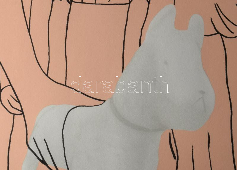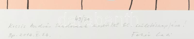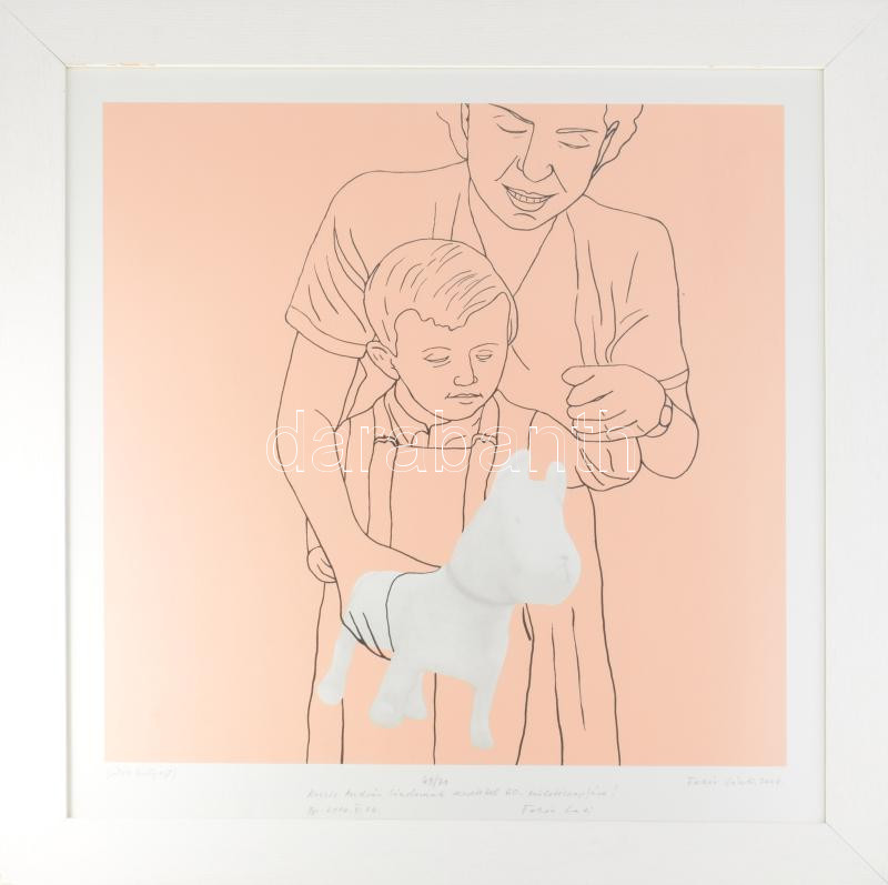Fehér László (1953-): Játék kutya, 2004. Szitanyomat, papír, jelzett, számozott (49/70), lap alján Fehér László autográf ajándékozási soraival Kocsis András Sándor könyvkiadó, 1997-től 2021-ig a Kossuth Kiadó elnök vezérigazgatója részére. Üvegezett, bal alsó sarkában apró sérüléssel rendelkező fakeretben. 62x62 cm.