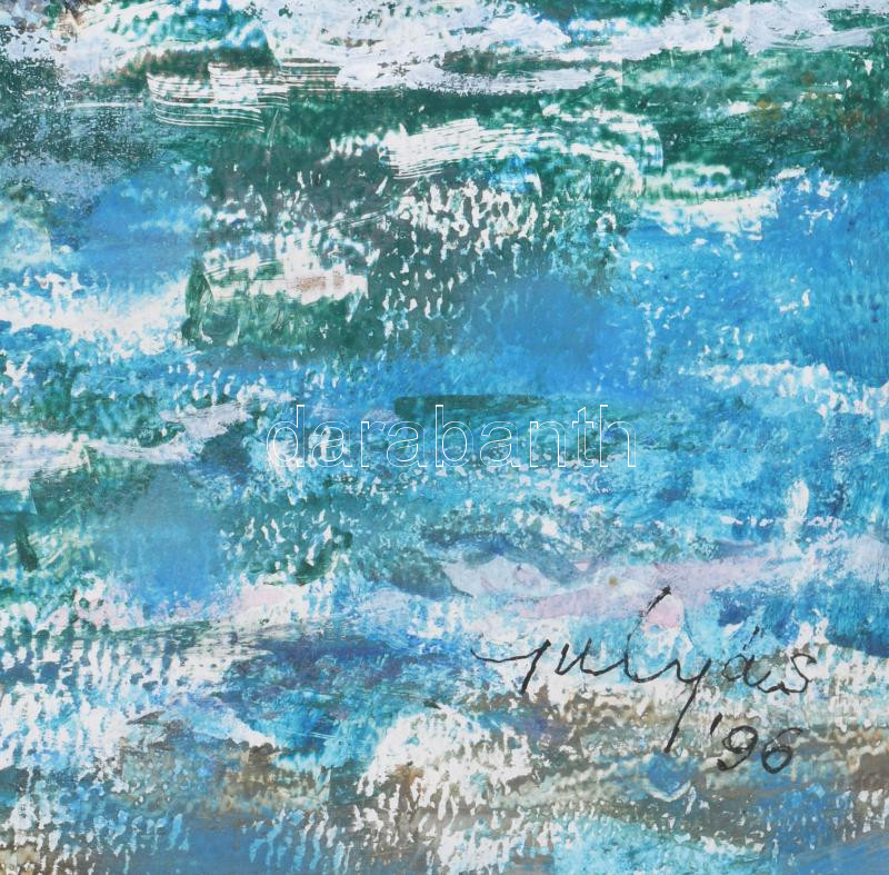 Beschreibung: Gulyás Dénes (1927-2003): Jégzajlás a Dunán Budapesten, a Parlament előtt, 1996. Olaj, farost, jelezve jobbra lent. Fakeretben. 60x80 cm