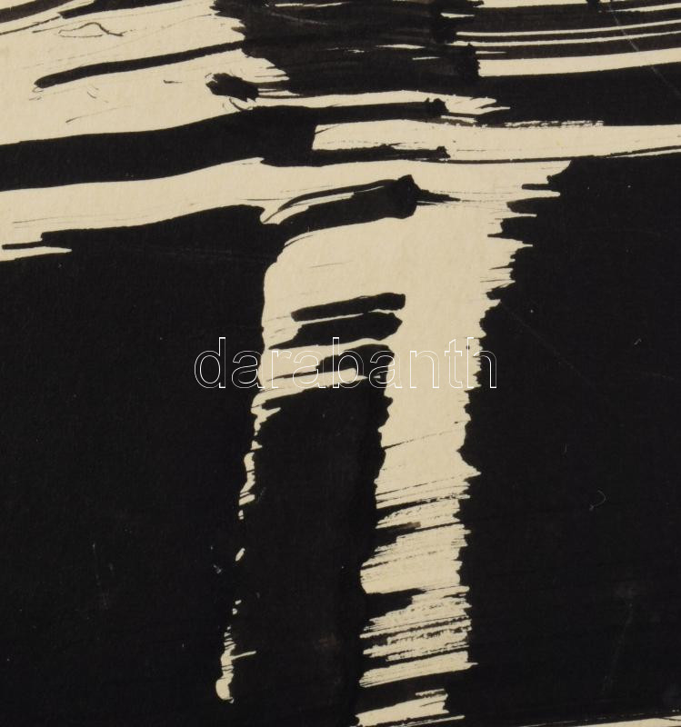 Beschreibung: Gyarmathy Tihamér (1915-2005): Áramlás (cím nélkül), 1967. Tus, papír. Hátoldalán jelzett (Gyarmathy 67) és R 67/73 életmű katalógusszámmal. Lapszéli sérülésekkel, szakadásokkal, sarkaiban paszpartuzás nyomaival. 61×85,5 cm. / ink on paper, signed and with oeuvre catalogue no. 67/73 on the reverse