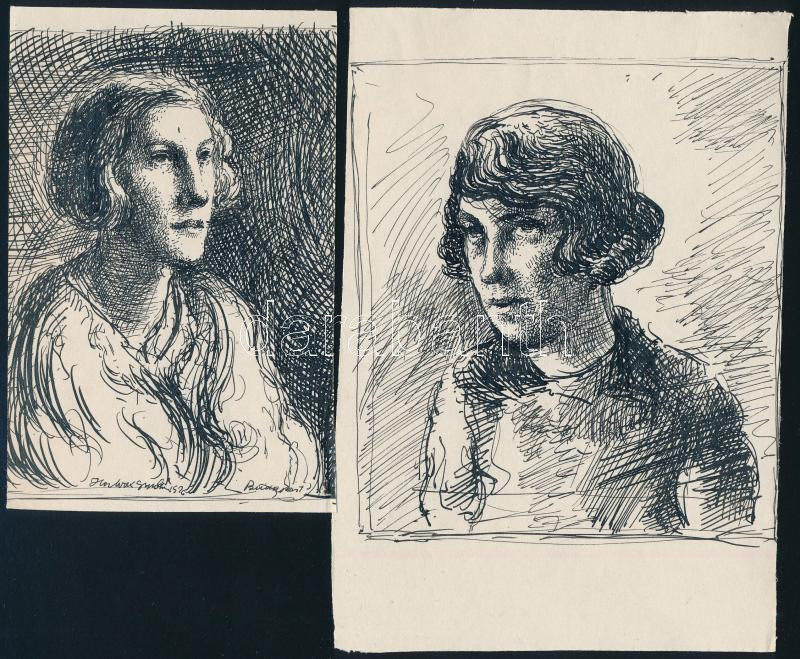 Beschreibung: Halvax Gyula (1906-1984): 2 db női portré rajz. Tus, papír, egyik jelzett és datált (1926), 13,5x9 és 12x17 cm.