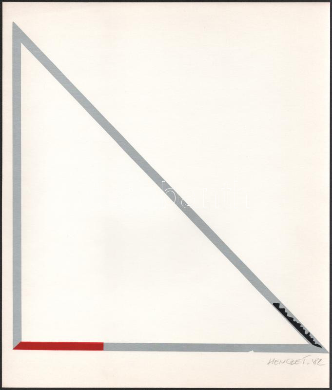 Beschreibung: Hencze Tamás (1938-2018): Háromszögletű tér (cím nélkül), 1982. Szitanyomat, papír, jelzett. 29x28 cm.