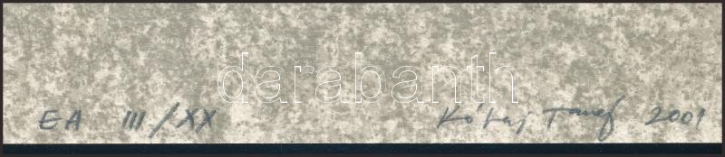 Beschreibung: Kótai Tamás (1959-): Rajz. Lito-ofszet, papír, jelzett, művészpéldány E.A. III/XX számozással, 29x23 cm. A 2001-ben megjelent In passing/Menet közben c. mappából.