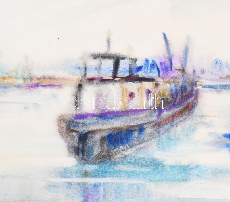 Beschreibung: Kukovics Rózsa (1942-): Hajó a Dunán, 1985. Akvarell, papír. Jelzett. Paszpartuban. 34x49,5 cm