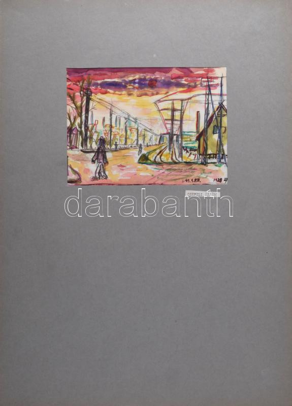 Beschreibung: Nolipa István Pál (1907-1986): Csepeli átjáró, 1938. Vegyes technika, papír. Jelezve jobbra lent. Paszpartuban. 13,5x19 cm