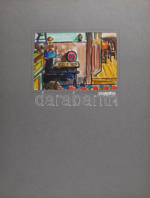 Beschreibung: Nolipa István Pál (1907-1986): Konyharészlet, 1938. Akvarell, ceruza, papír. Jelezve jobbra lent. Paszpartuban. 13,5x19 cm