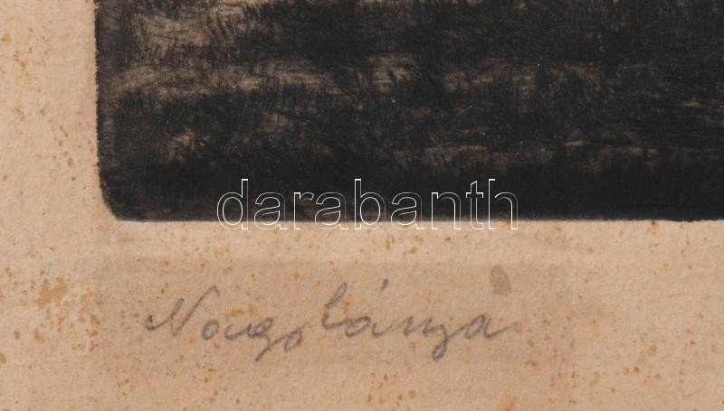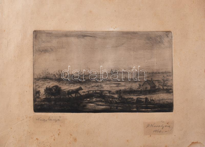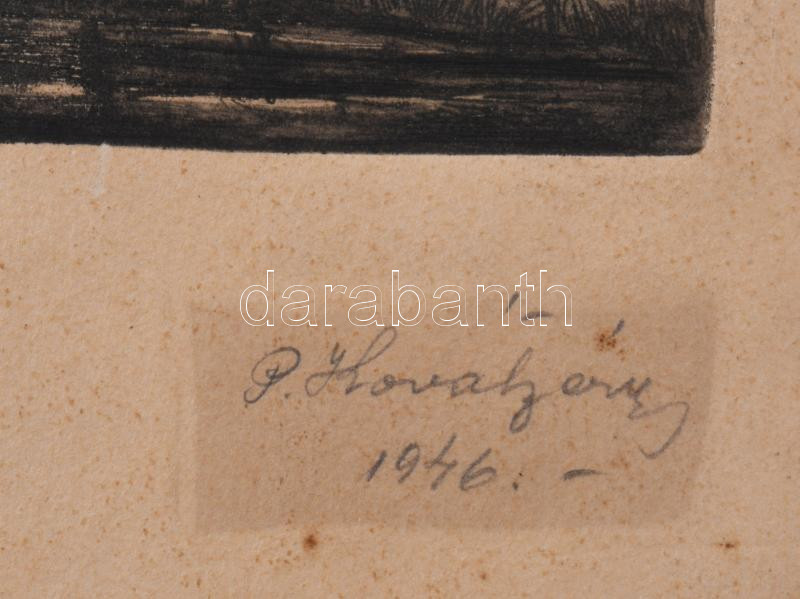 Beschreibung: P. Kováts Géza (1908-1956): Nagybánya, rézkarc, papír, jelzett. Lap széle foltos. 11x19 cm