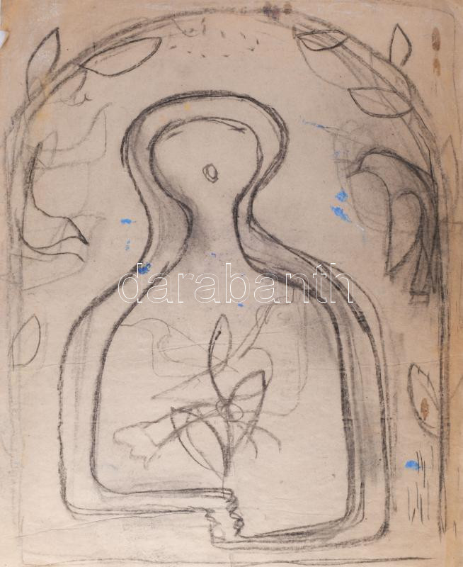 Beschreibung: Rác András (1926-2013): Szentendrei ikon. Szén, papír, jelzés nélkül. Proveniencia: A művész hagyatéka. Lapszéli apró szakadásokkal. 60x48 cm