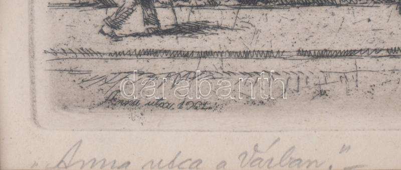 Beschreibung: Tichy Kálmán (1888-1968): Anna utca a Várban. Rézkarc, papír, jelzett, üvegezett fakeretben. 24x31 cm.