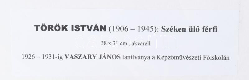 Beschreibung: Török István (1906-1945), Vaszary János tanítványa a Képzőművészeti Főiskolán: Széken ölő férfi. Akvarell, papír, jelzett. Üvegezett fakeretben, 36,5×28,5 cm