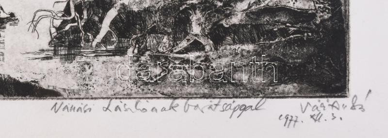 Beschreibung: Váci András (1928-1989): Dunakanyar. Rézkarc, papír, jelzett, szélén kissé foltos, 29,5×44 cm