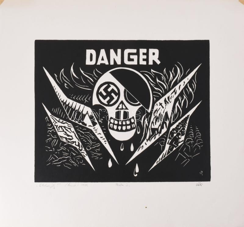 Váli Zoltán (1910-1994): Életveszély!, 1976 (militária témájú grafika ... https://www.darabanth.com/de/518-Gemalde-Plakat-ex-libris-Auktion/523.0/Gemalde-und-Grafiken/Gemalde-und-Grafiken~4/Vali-Zoltan-1910-1994-Eletveszely-1976-militaria-temaju-grafika-horogkereszt-motivummal~II3505379