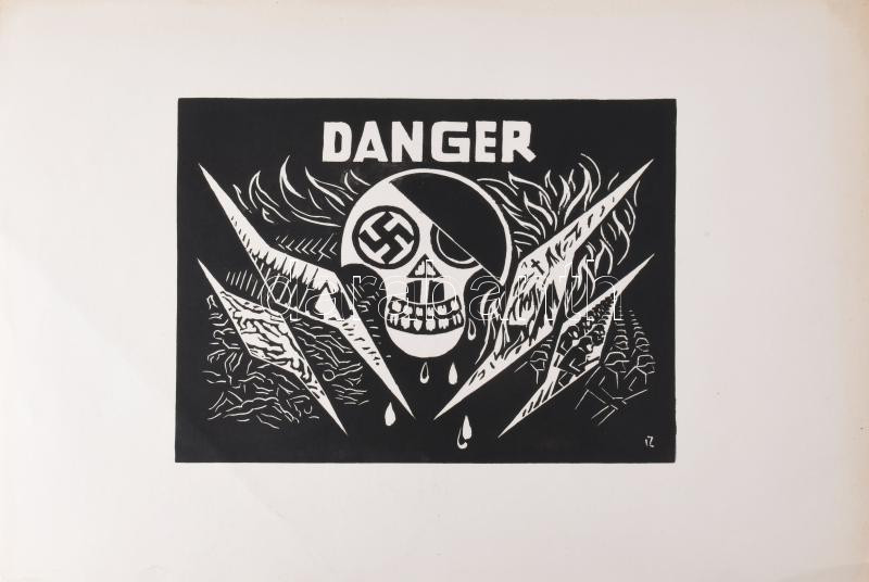 Váli Zoltán (1910-1994): Életveszély!, 1976 (militária témájú grafika ... https://www.darabanth.com/de/518-Gemalde-Plakat-ex-libris-Auktion/523.0/Gemalde-und-Grafiken/Gemalde-und-Grafiken~4/Vali-Zoltan-1910-1994-Eletveszely-1976-militaria-temaju-grafika-horogkereszt-motivummal~II3505805