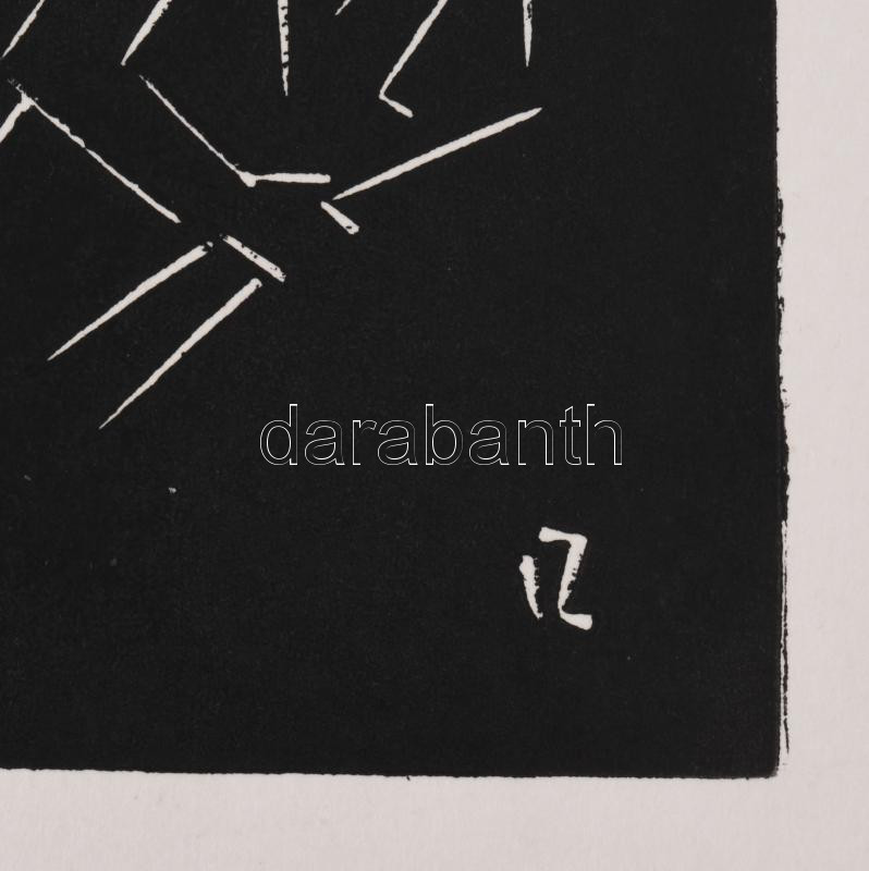 Beschreibung: Váli Zoltán (1910-1994): Életveszély!, 1976 (militária témájú grafika horogkereszt motívummal). Linómetszet, papír, jelzett. Hajtásnyommal. 26,5x34,5 cm