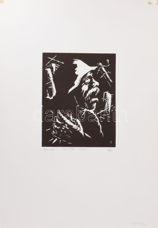 Beschreibung: Váli Zoltán (1910-1994): Memento!, 1970-as évek (militária témájú grafika). Linómetszet, papír, jelzett. Próbanyomat próba 1 jelzéssel. Lap felső sarkaiban paszpartuzás nyomaival. 25x20 cm