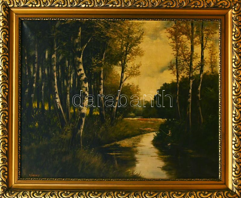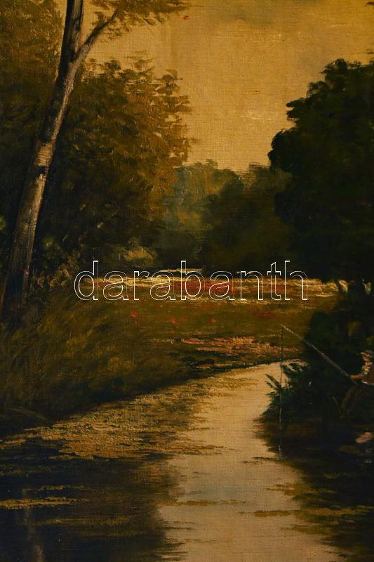 Csókos jelzéssel: Pecázó. Olaj, vászon. Dekoratív, kissé sérült fakeretben. 80x100 cm. KIZÁRÓLAG SZEMÉLYES ÁTVÉTEL, NEM POSTÁZZUK / ONLY PERSONAL COLLECTION IN OUR OFFICE!