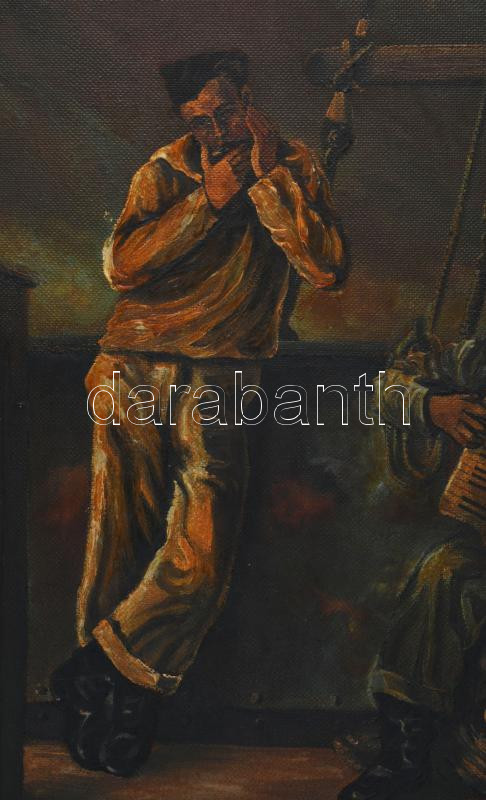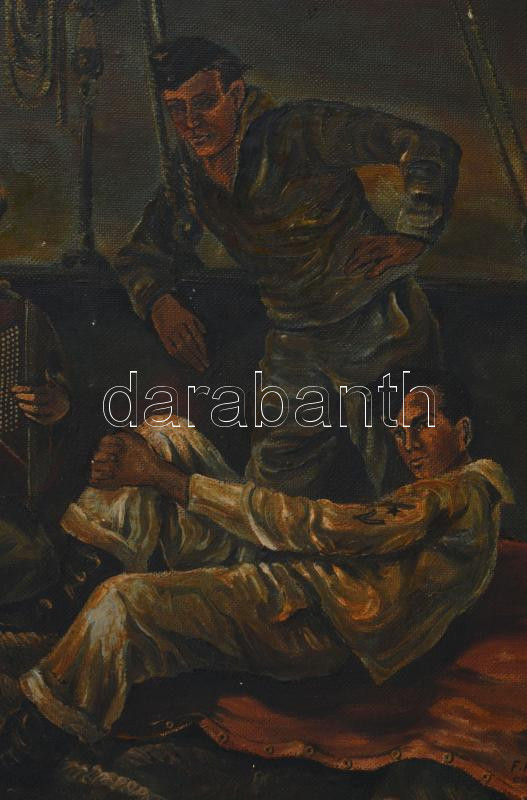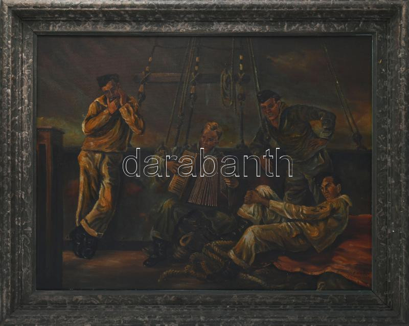 F. Horn jelzéssel: Zenélő matrózók. Olaj, farost. Dekoratív fakeretben. 55x71 cm