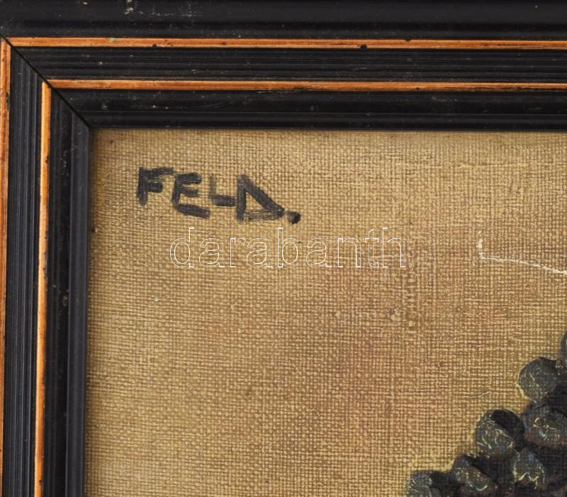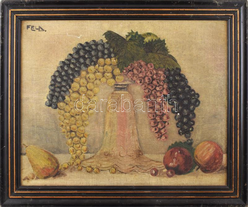 Feld jelzéssel: Szőlős csendélet. Olaj, vászon. Dekoratív, kissé kopott fakeretben. 39x49 cm