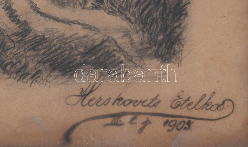 Herskovits Etelka jelzéssel (Herkovits Mórné Léderer Etelka?): Udvar, 1905. Ceruza, papír. Kissé sérült. Üvegezett fakeretben. 23,5x31 cm