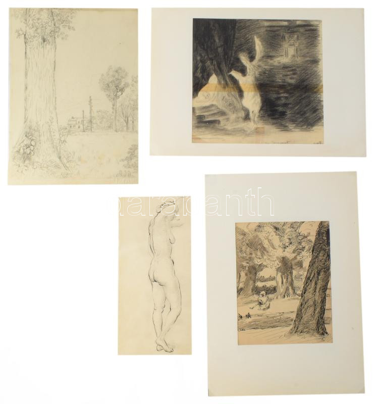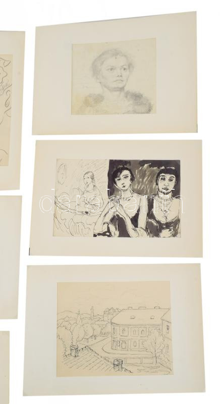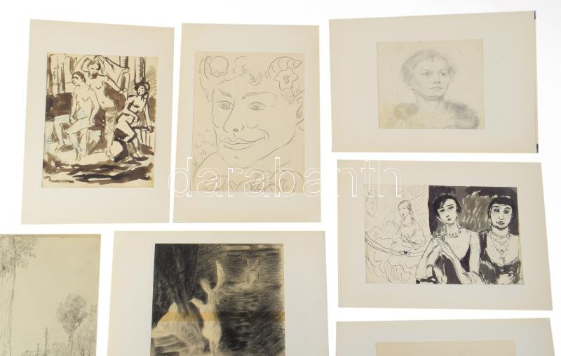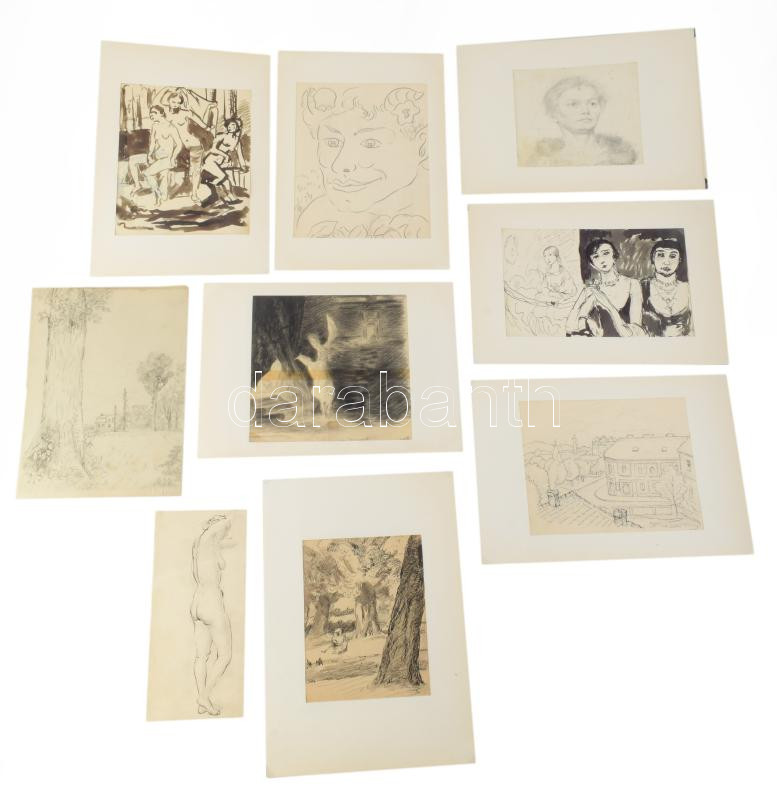 Jelzés nélkül, 1900-1930 körül: 10 db tanulmányrajz (női aktok, portrék, városrészlet, táj stb.) Klf. technikák, papír, klf, méretekben 25x18 cm-ig.