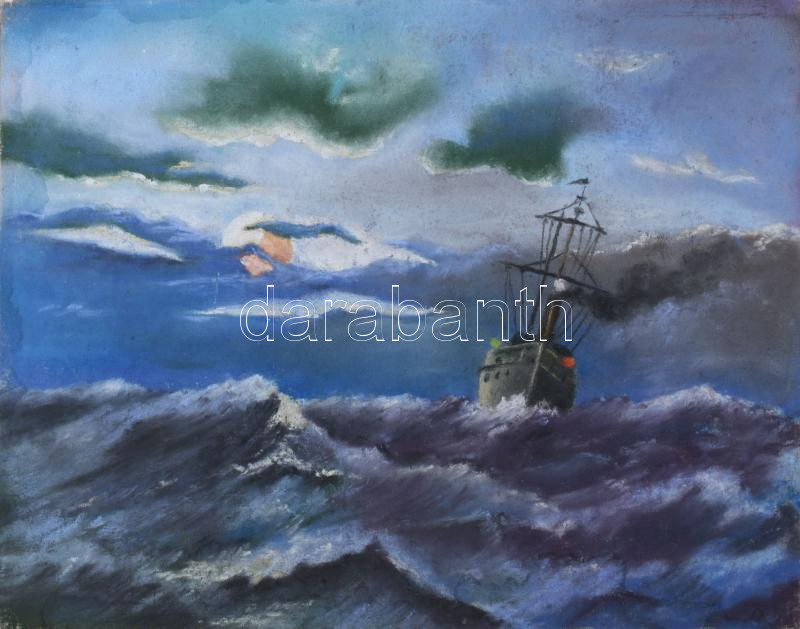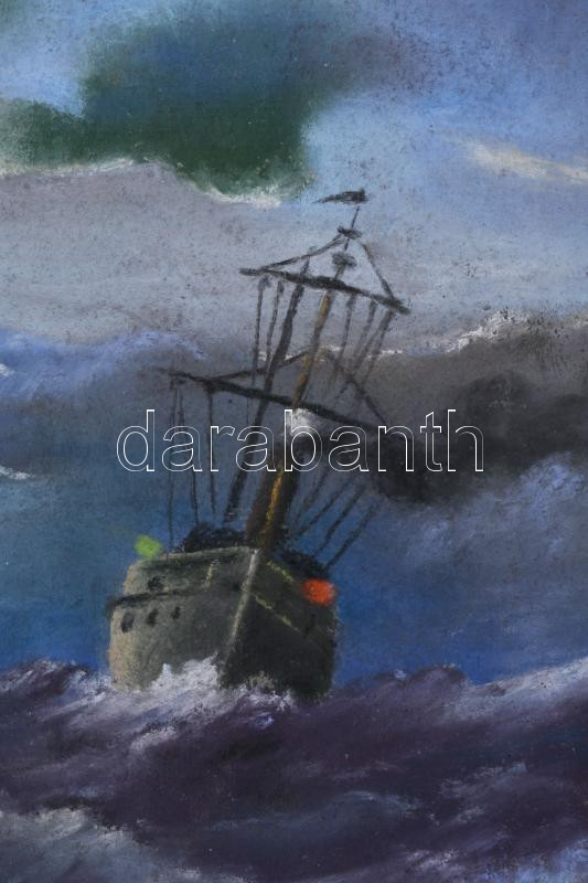 Jelzés nélkül: Hajó a viharban. Pasztell, papír. Lapszéli apró sérüléssel. 24×33 cm
