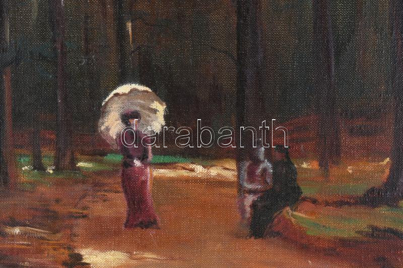 Jelzés nélkül, XX. sz.: Séta a parkban. Olaj, vászon, dekoratív fakeretben, 54×44 cm