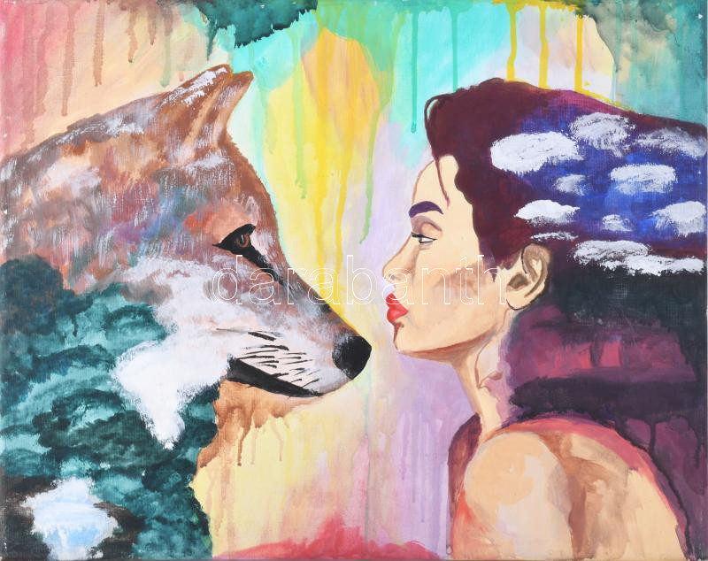 Jelzés nélkül, XX. sz. vége/XXI. sz. eleje: Hölgy kutyával. Akril, vászon, 40×50 cm