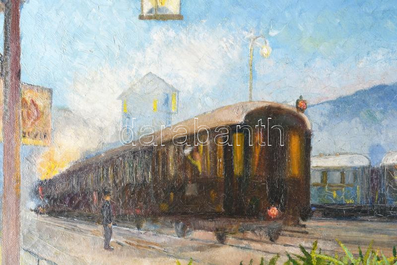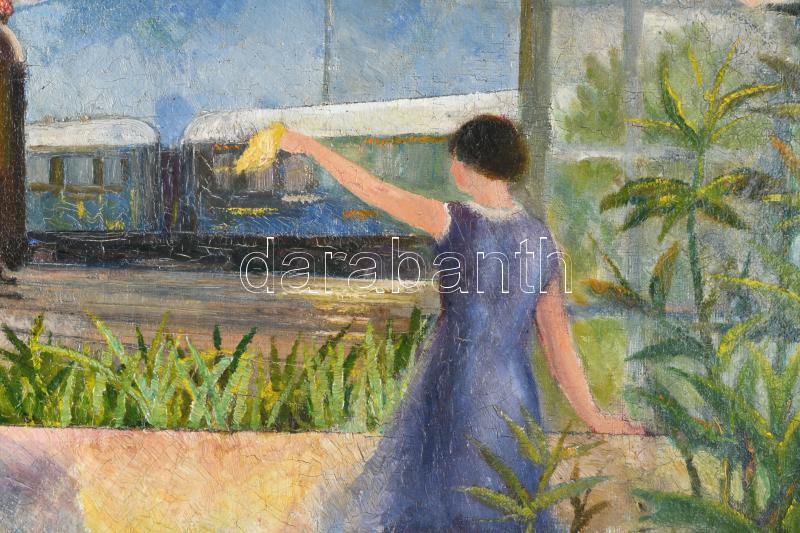 Kemény László jelzéssel, 1930-as évek: Búcsú a pályaudvaron. Olaj, vászon. 50x66 cm