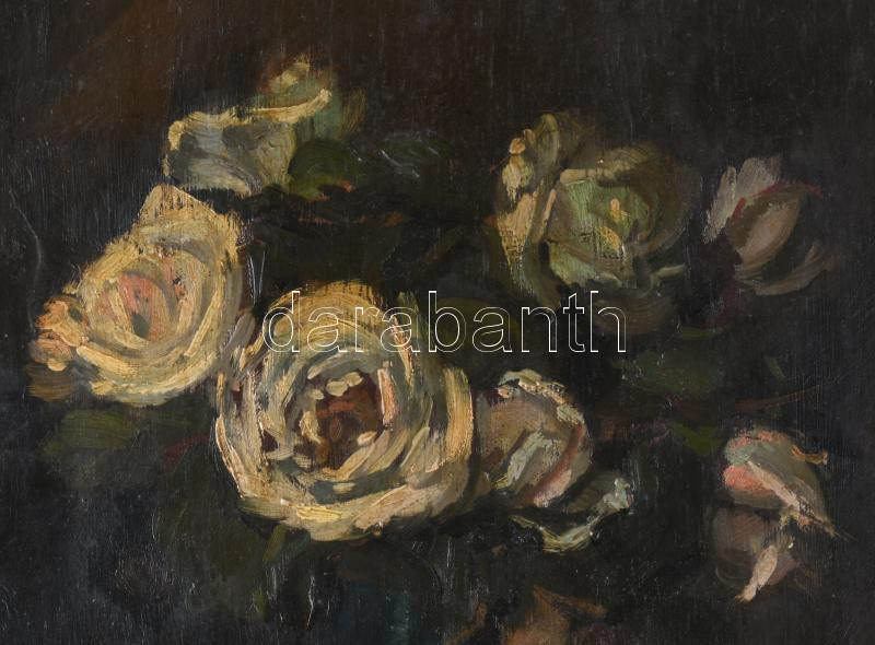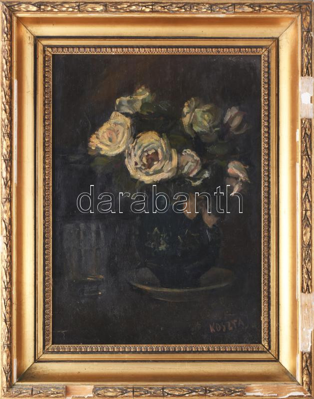 Koszta J jelzéssel: Csendélet. Olaj, fa. Hátoldalán Magyar Nemzeti Galéria 72/981 sz. bírálati címkéjével. Dekoratív, sérült fakeretben, 48×35 cm.