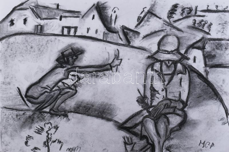 MCP jelzéssel: Hölgyek a szabadban. Vegyes technika, papír. 29,5x42 cm.