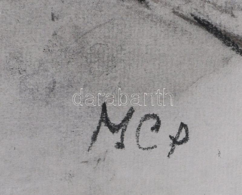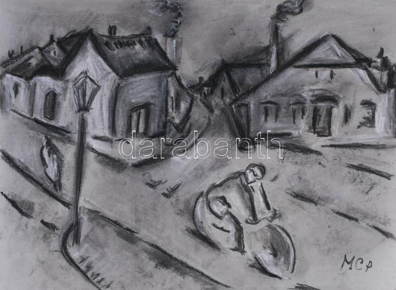 MCP jelzéssel: Kerékpáros. Vegyes technika, papír. 29,5x42 cm.