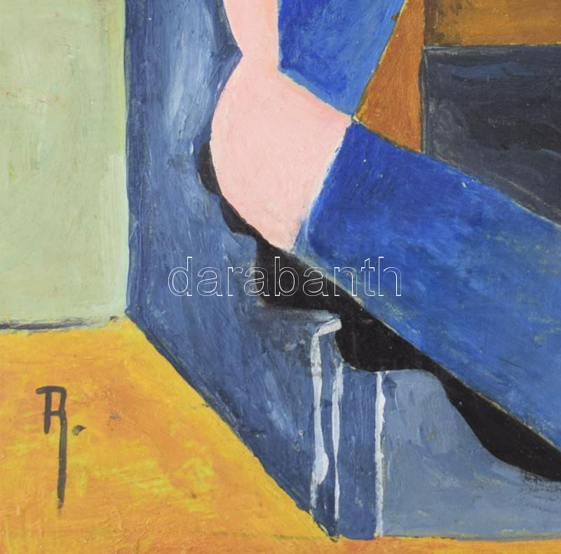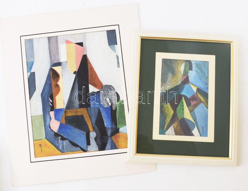 Olvashatatlan (A?) jelzéssel, feltehetően XX. sz. vége, 2 db mű: Kubista alakok. Olaj, farost, 25x21 és 16x10 cm (utóbbi üvegezett keretben).