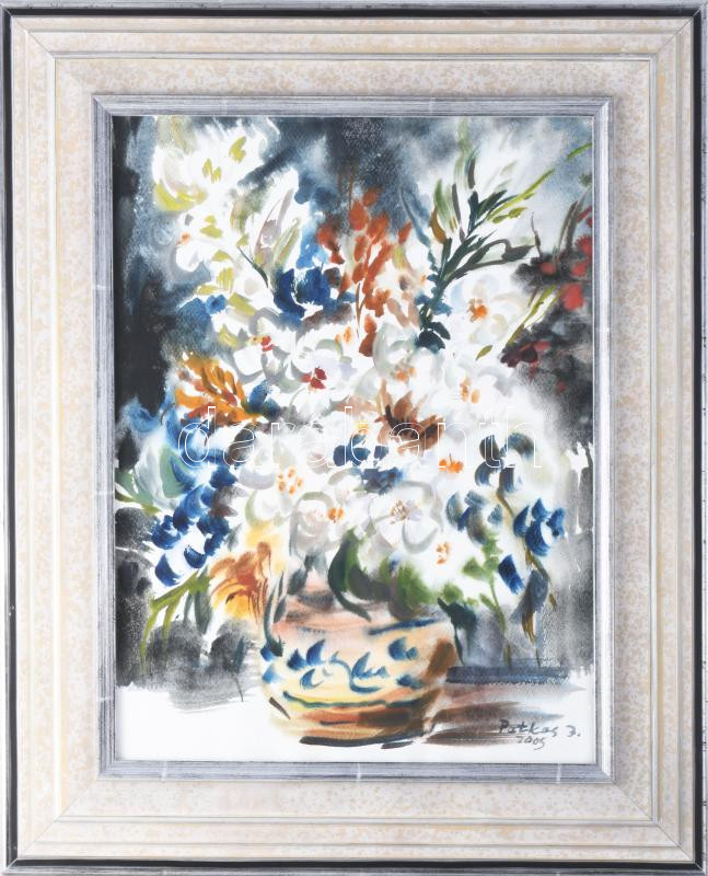 Olvashatatlan jelzéssel: Csendélet. Akvarell, papír. Dekoratív, üvegezett fakeretben. 50x37,5 cm.