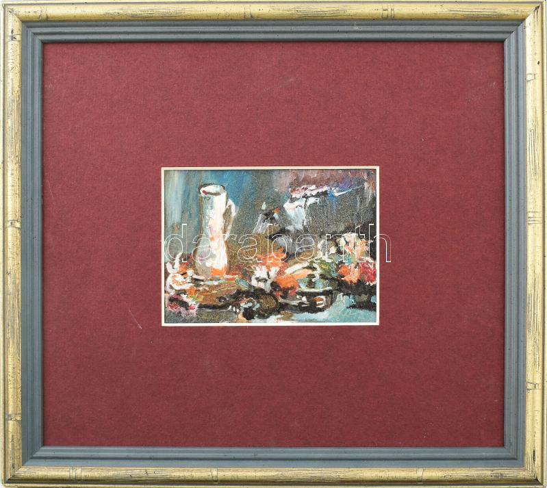 Olvashatatlan jelzéssel: Csendélet. Olaj, karton. Dekoratív fakeretben. 8x11 cm