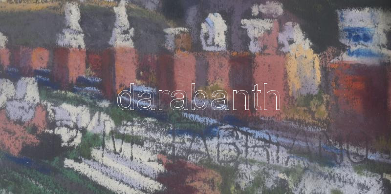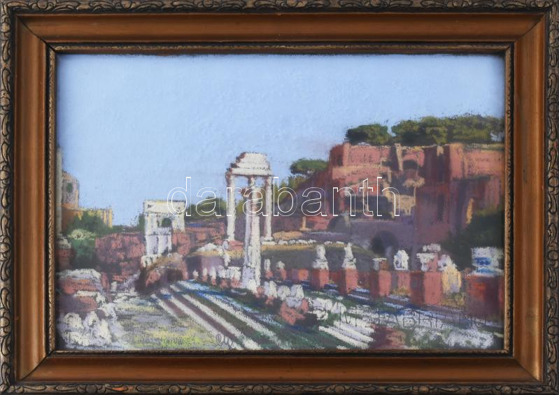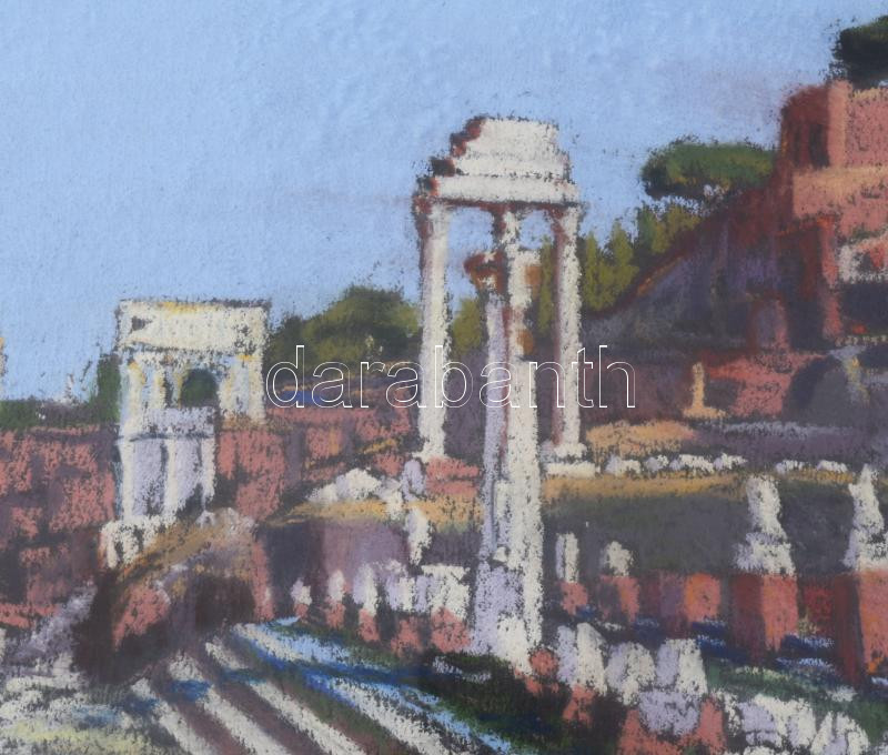 Olvashatatlan jelzéssel: Római antik romok. Pasztell, papír, jelzett. Üvegezett, dekoratív fakeretben. 25x32 cm