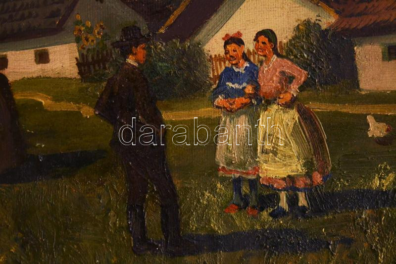 Olvashatatlan jelzéssel: Társaság. Olaj, karton. Dekoratív fakeretben. 63x94 cm. KIZÁRÓLAG SZEMÉLYES ÁTVÉTEL, NEM POSTÁZZUK / ONLY PERSONAL COLLECTION IN OUR OFFICE!