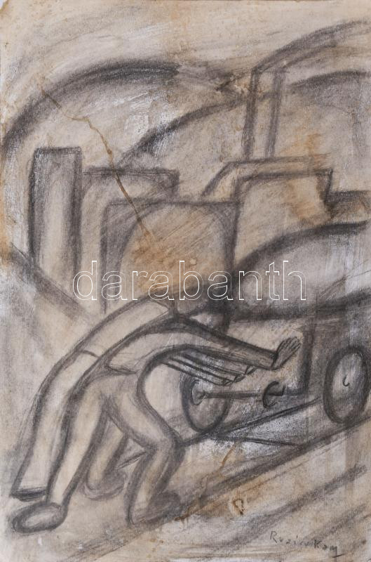 Ruzicskay jelzéssel: Munkások. Vegyes technika, papír. Kissé foltos. 42x29,5 cm.