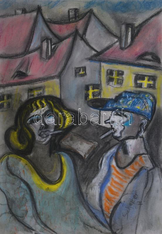 Scheiber H jelzéssel: Cigarettázó alakok. Vegyes technika, papír. 42x29,5 cm.
