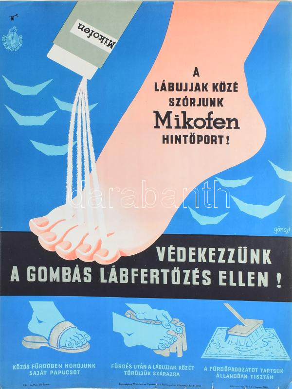 1962 Gönczi-Gebhardt Tibor (1902 - 1994): Védekezzünk a gombás lábfert... https://www.darabanth.com/de/518-Gemalde-Plakat-ex-libris-Auktion/523.0/Gemalde-und-Grafiken/Plakat~3/1962-Gonczi-Gebhardt-Tibor-1902-1994-Vedekezzunk-a-gombas-labfertozes-ellen-Egeszsegugyi~II3517327