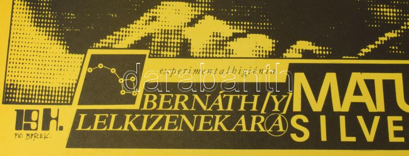 Beschreibung: Bernáthy Sándor (1949-2012): Matuska Silver Band, Bernáth(y) Lelkizenekara stb., Lágymányosi Közösségi Ház, 1987. Underground-alternatív plakát, papír, jelzett a plakáton, 29,5x42 cm.