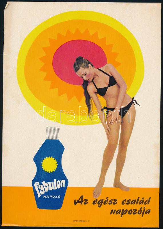 "Fabulon napozó. Az egész család napozója." Bp., Offset-ny., a szélén ... https://www.darabanth.com/de/518-Gemalde-Plakat-ex-libris-Auktion/523.0/Gemalde-und-Grafiken/Plakat~3/Fabulon-napozo-Az-egesz-csalad-napozoja-Bp-Offset-ny-a-szelen-kis-gyurodessel-24x17-cm~II3506552