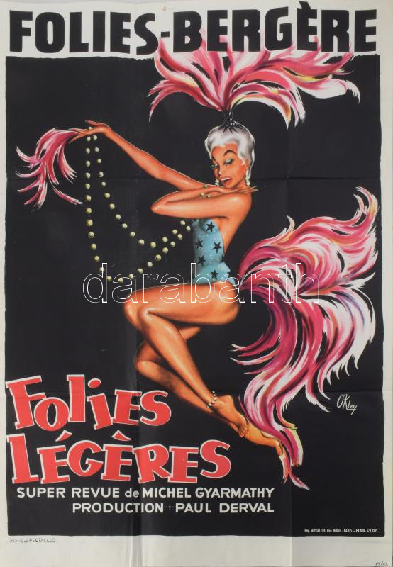Beschreibung: Pierre Okley (Pierre Gilardeau, 1929-2007): Folies-Bergere, Folies Légéres, super revuede Michel Gyarmathy. Plakát, papír, jelzett a plakáton. Lapszéli apró szakadással. Hajtva. 60x40 cm